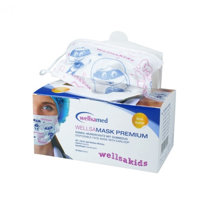 Μάσκα με παιδικό σχέδιο, με λάστιχο, τριών στρωμάτων, χωρίς Latex και με φιλτράρισμα 99,5%.