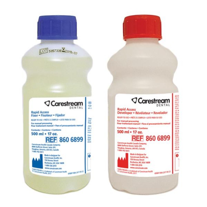 Υγρά εμφάνισης και μονιμοποίησης έτοιμα προς χρήση, για διαδικασία με το χέρι. Μπορούν να χρησιμοποιηθούν με όλα τα οδοντιατρικά ακτινογραφικά φιλμ. Επεξεργασία 30 δευτερολέπτων (εμφάνιση 15 δευτερολέπτων, στερέωση15 δευτερολέπτων στους 20°C).